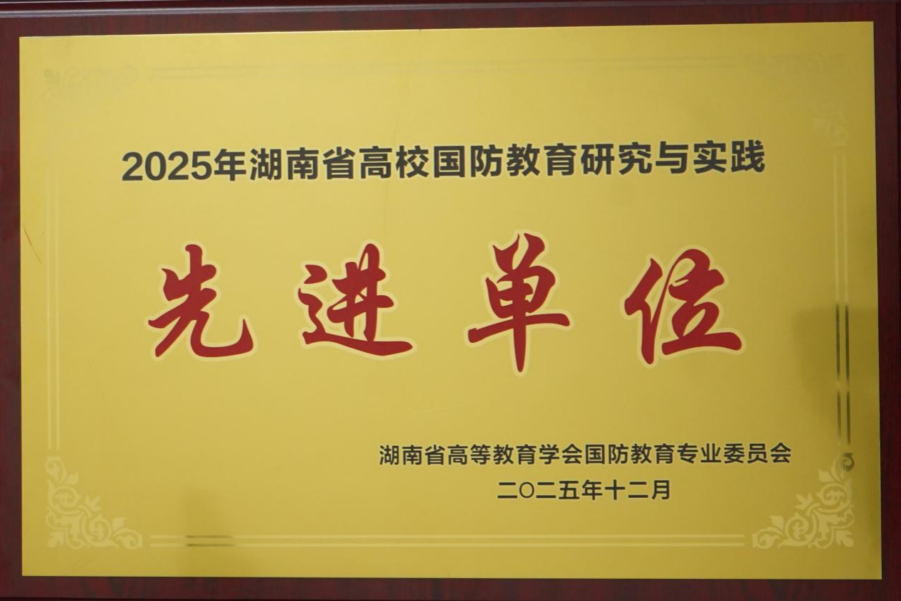 近日,湖南省高等教育学会国防教育专业委员会2025年年会暨国防教育获奖项目颁奖仪式在岳阳职业技术学院举行,我校学生工作部、武装部副部长段婷参会。本次会议总结了2025年度国防教育工作,研究了2026年工作及专业委员会“一五五”规划,并对本年度的各项国防教育赛事进行表彰。其中,我校荣获2025年湖南省高校国防教育研究与实践先进单位、升国旗仪式展示赛本科组一等奖、队列会操本科组一等奖等多个奖项。学生陈桥桥的作品《...
