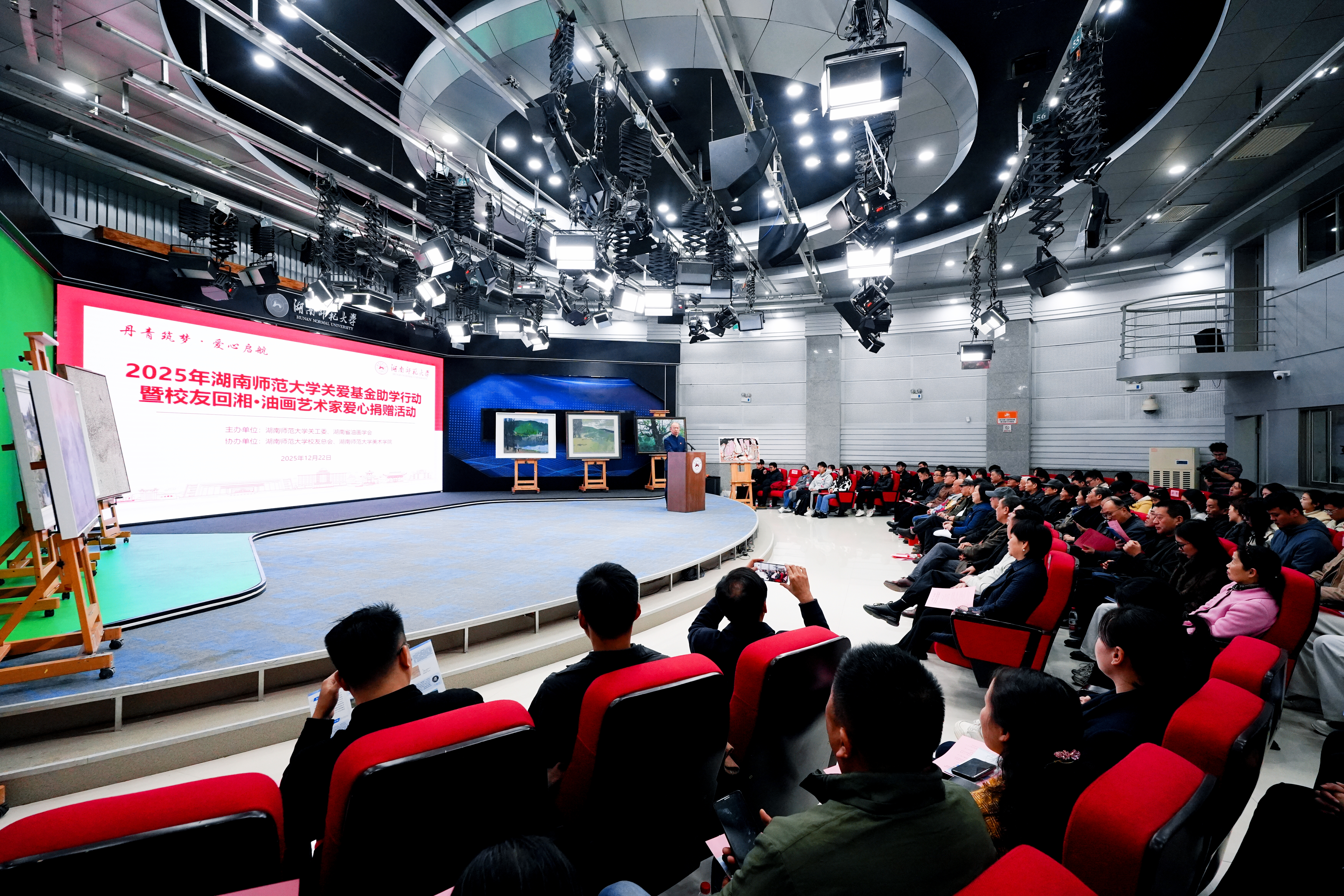 12月22日下午,由校关工委、湖南省油画学会主办,校友总会、美术学院协办的“丹青筑梦爱心启航”2025年湖南师范大学关爱基金助学行动暨校友回湘•油画艺术家爱心捐赠活动在我校融媒体中心展播厅举行,校党委副书记、关工委主任段巍,关工委常务副主任徐书华出席活动。离退休处负责人尹建新主持活动。徐书华介绍了学校“关爱基金”的基本情况。她表示,“关爱基金”自成立以来,得到学校广大“五老”、知名艺术家、众多爱心企业...