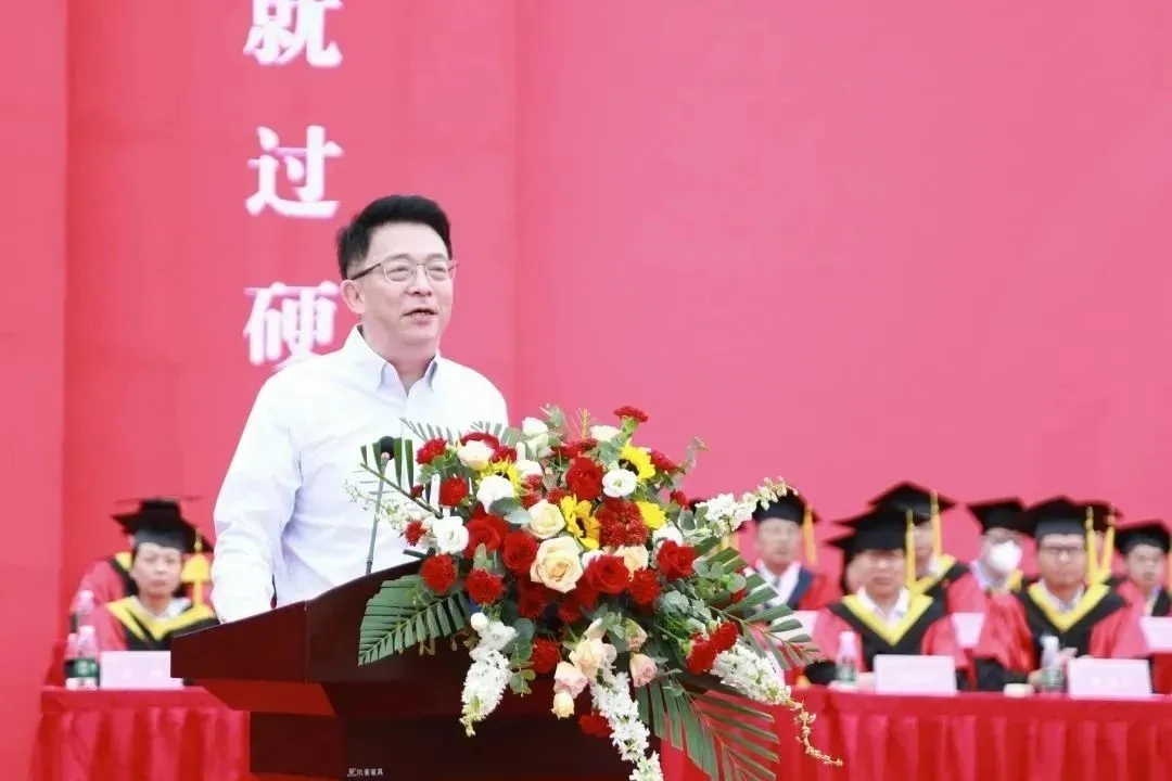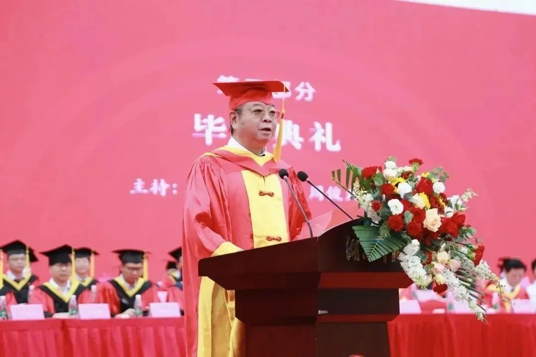 欧洲科学院院士、校党委书记蒋洪新教授向毕业生表达衷心的祝愿。他回顾几年来我校经历的风雨与挑战,并提出三点希望:一是要胸怀“国之大者”,激扬青春梦想,爱国,是人世间最深层、最持久、最伟大的情感,希望大家以此为念,仰望星空,心存梦想,脚踏实地,善作善成,将爱国情、强国志、报国行融入青春梦想;二是要锤炼过硬本领,汇聚青春力量,博观而约取,厚积而薄发,希望大家继续保持对世界的好奇、对知识的渴求、对真理的探索,继续不断地提升自我、突破自我、成就自我,集聚起奔涌磅礴的青春力量;三是要勇于实干担当,书写青春华章,面对学业、事业与家庭的多重压力,可能少不了会委屈、困惑和不安,希望同学们少些抱怨,多一些调整和适应,心存一份感恩,保持一份热情,机遇总会眷顾那些正直、善良、且务实的人。