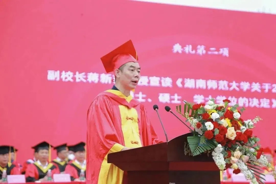 副校长蒋新苗教授宣读《湖南师范大学关于2023年6月授予博士、硕士、学士学位的决定》。