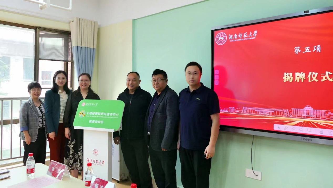周英展和余洁共同为“咸嘉湖校区心理健康教育与咨询中心”揭牌。