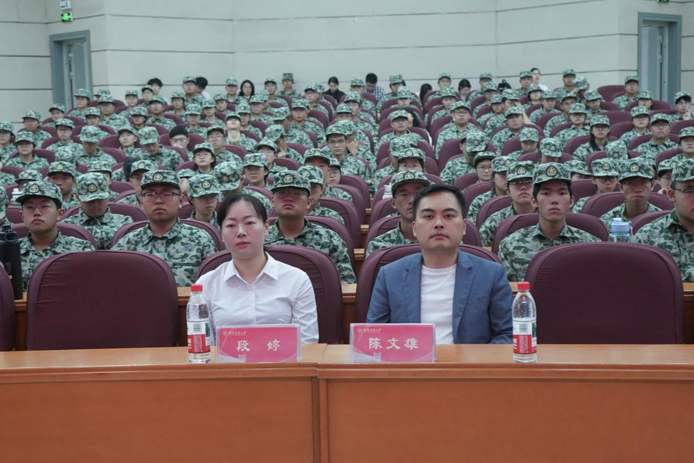 (通讯员 陈艺婷 吴波)10月14日下午,一场主题鲜明、内容丰富的“国防教育第一课”在我校国际学术报告厅成功举行。此次活动由学生工作部、武装部组织,湖南省国防动员办公室会同省人防协会协助开展。活动特邀原国防科技大学军政基础教育学院军事学教授董晓军来校,作了以《利剑擎天慑四方铁甲洪流震八荒——93大阅兵新装备探秘》为主题的专题授课。学生工作部、武装部部长陈文雄,学生工作部、武装部副部长段婷出席活动,300余名师生代表参与学习。