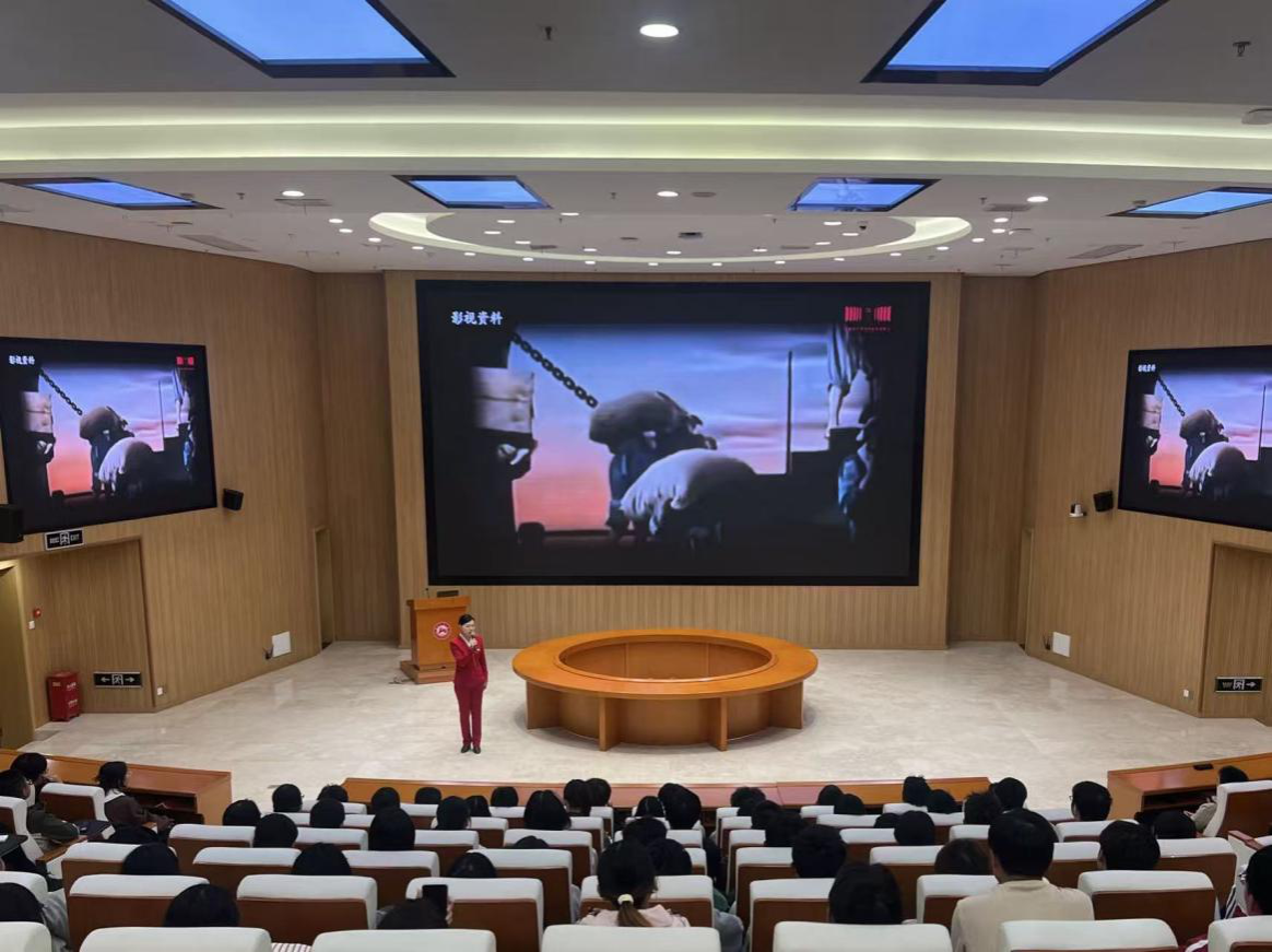 (通讯员 李绮文 刘安芮)10月23日晚,我校学生工作部联合中国共产党湖南历史展览馆宣教部在图书馆报告厅开展“铭记历史 吾辈自强——纪念中国人民抗日战争暨世界反法西斯战争胜利80周年”党史第一课研学活动。活动由学生工作部副部长罗元主持,新生代表180余人参加。