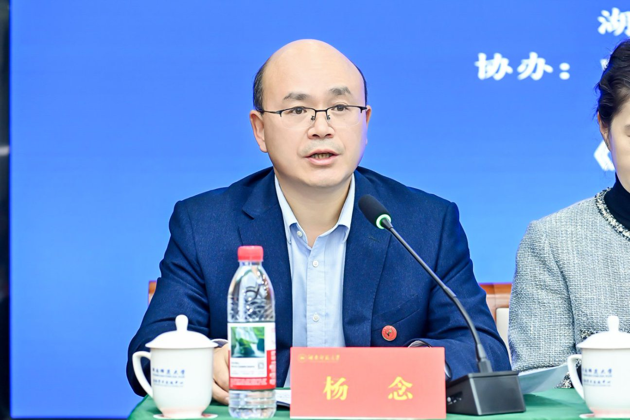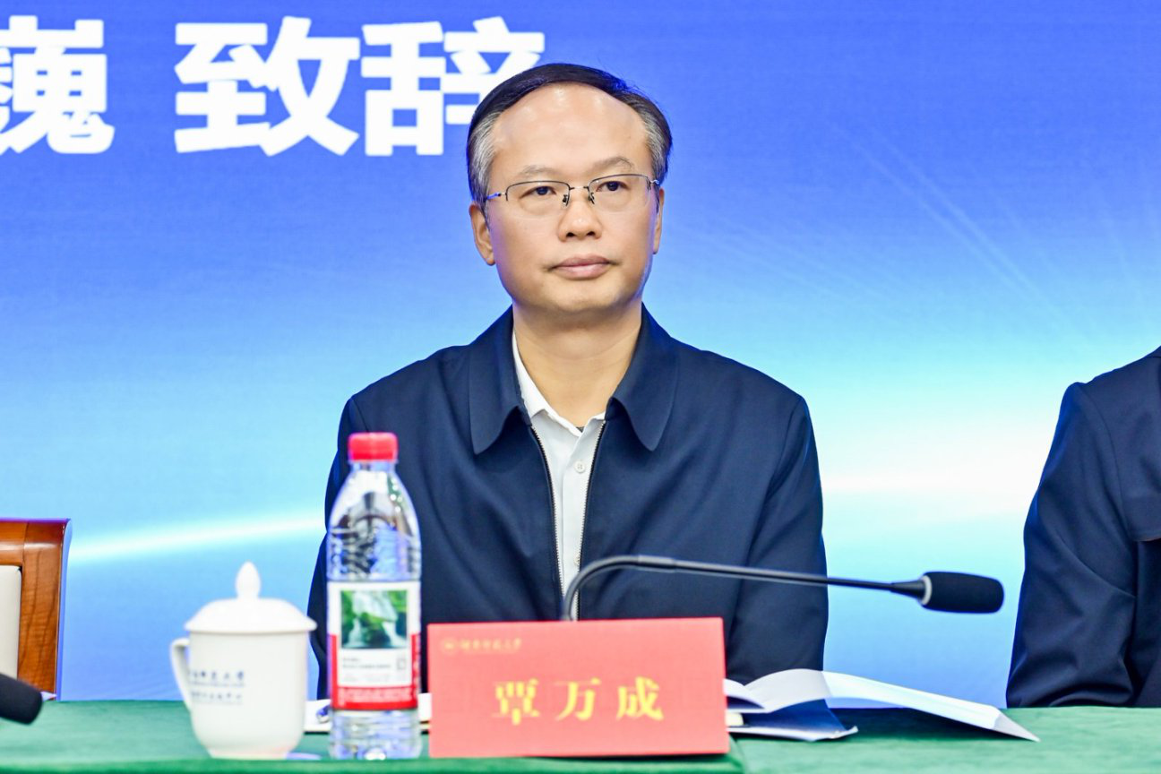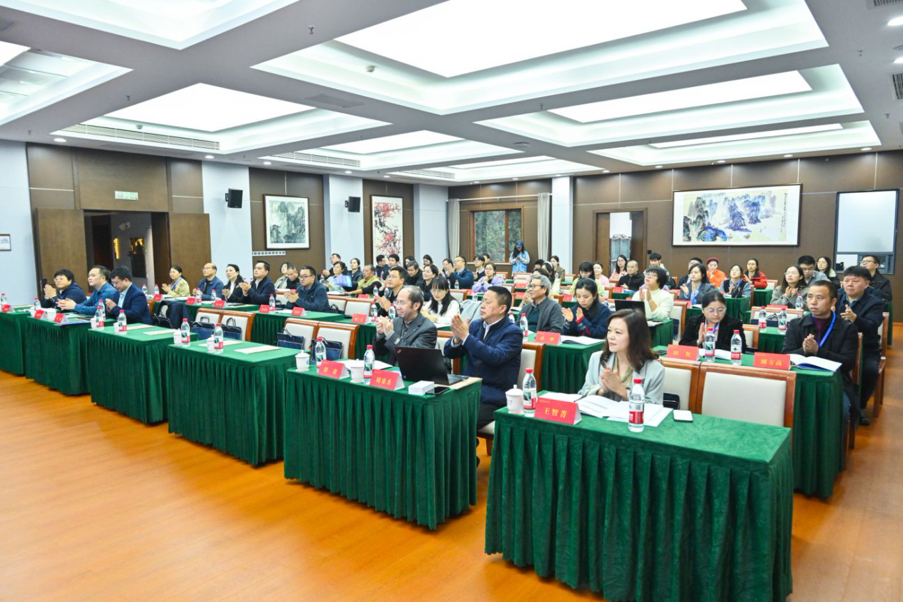 覃万成讲话,他代表湖南省民宗委对会议的召开表示热烈祝贺,对参会的专家学者表示热烈欢迎,对研究基地在民族理论研究领域所作出的积极贡献表示充分肯定。他表示,做好新形势下的民族理论研究工作,要锚定国家战略,在服务高质量发展中找准研究坐标;要立足湖南实际,在挖掘湖湘特色中打造研究品牌;要聚焦工作实践,在回应现实需求中提升研究价值。