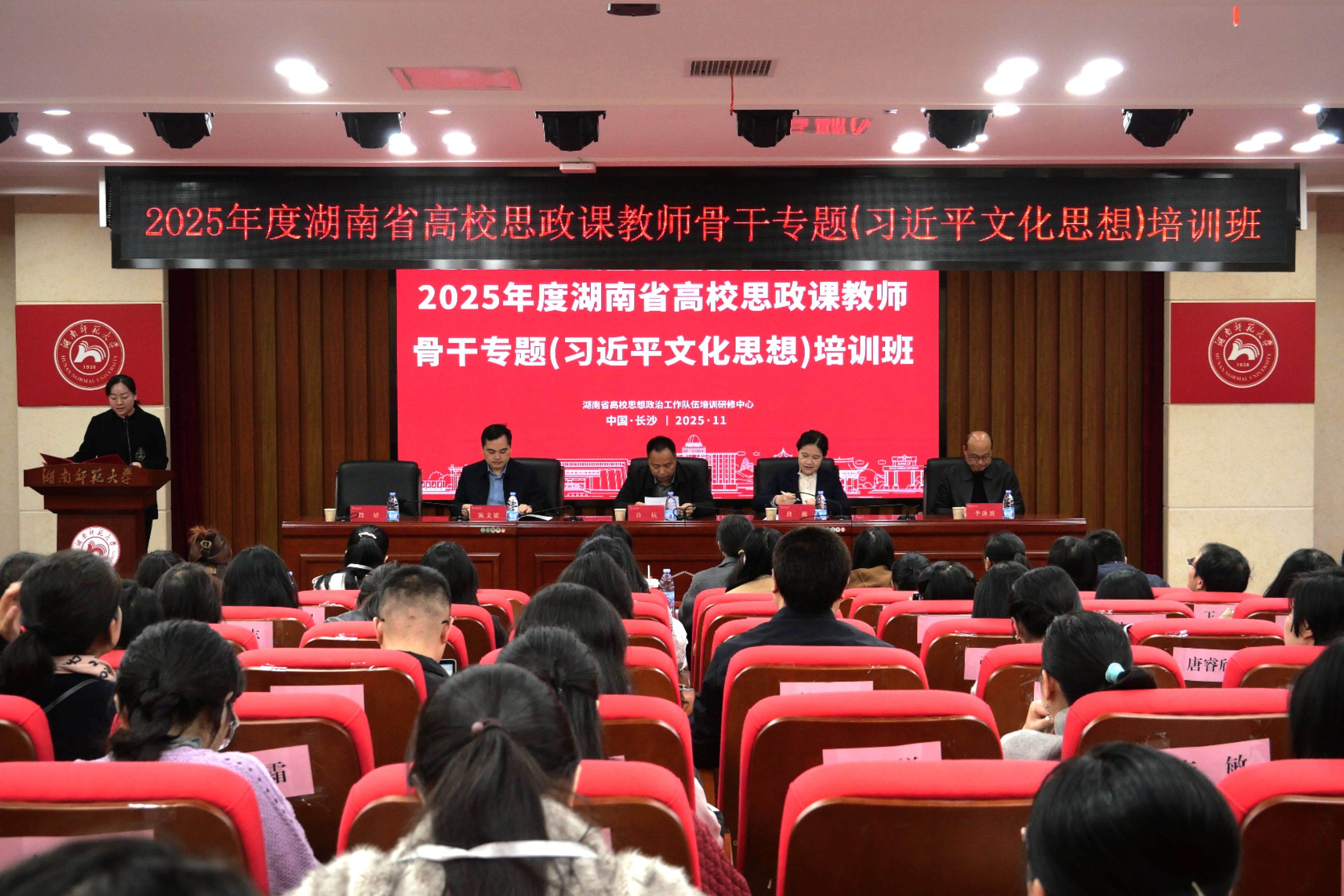 (通讯员 彭霖钢 周紫欣 洪禹姿)为全面提升思政课教师专业素养和教学能力,推动新时代思政课高质量发展,11月11日上午,2025年度湖南省高校思政课教师骨干专题培训班开班仪式在我校中和楼129报告厅顺利举行。湖南省委教育工委宣传部部长、省教育厅思政处处长许抗,我校党委副书记、教授段巍,学生工作部、武装部部长陈文雄,马克思主义学院党委书记李泳波出席活动。开班仪式由学生工作部、武装部副部长段婷主持。