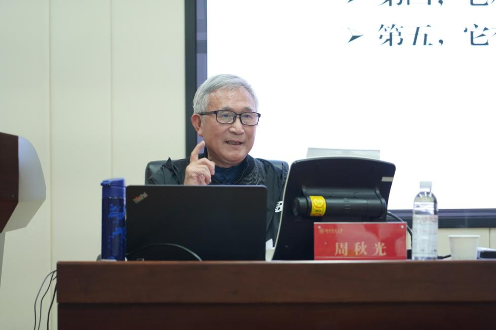 历史文化学院周秋光教授以《湖南人与湖湘精神》为主题,系统梳理湖湘文化的发展脉络及精神内核,解读湖湘精神中“心忧天下、敢为人先”的时代价值,深化港澳台学子对中华优秀传统文化的理解与认同。