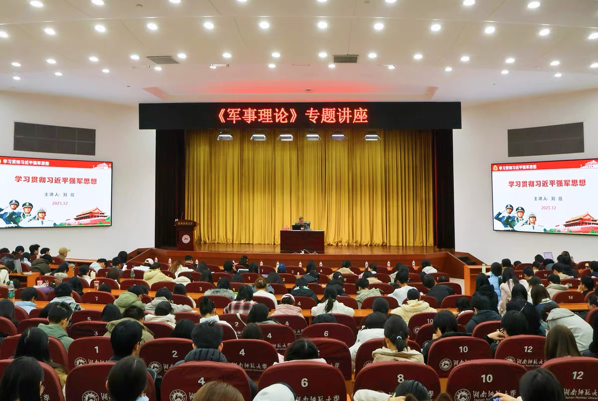 (通讯员 许芳菲 杨祉妍)为深入学习贯彻习近平强军思想、提升学生国防观念与军事理论素养,12月13日下午,我校学生工作部、武装部邀请湖南省人民武装学校党委委员、副校长刘彪在我校国际学术报告厅进行《学习贯彻习近平强军思想》专题授课。学生工作部、武装部副部长段婷出席,各学院军事理论教员参加。活动由学生工作部、武装部陈艺婷老师主持。