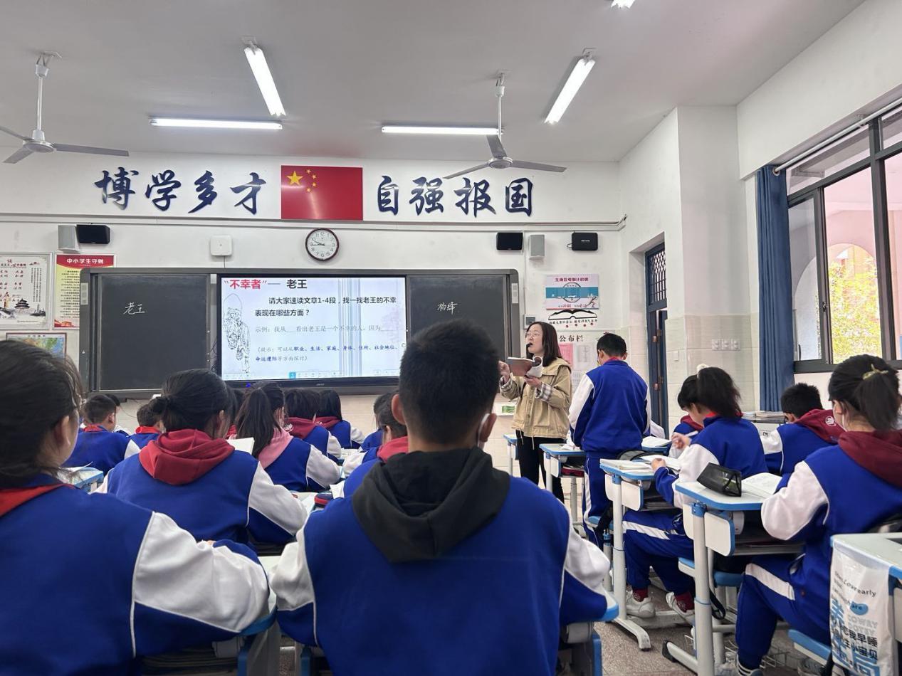尹良英抓住文章关键词“不幸”和“愧怍”来展开课堂,问题设置层层递进,体现思辨意识,逻辑严密,角度全面。在总结老王形象特点时,注重培养学生用词凝练的习惯,鼓励学生用四字短语来概括。就互动而言,学生积极举手发言,老师有针对性地点评并引导,发挥了教师的指导作用,也尊重了学生的主体地位。师生亲切交流、合作探究,课堂具有共生性。