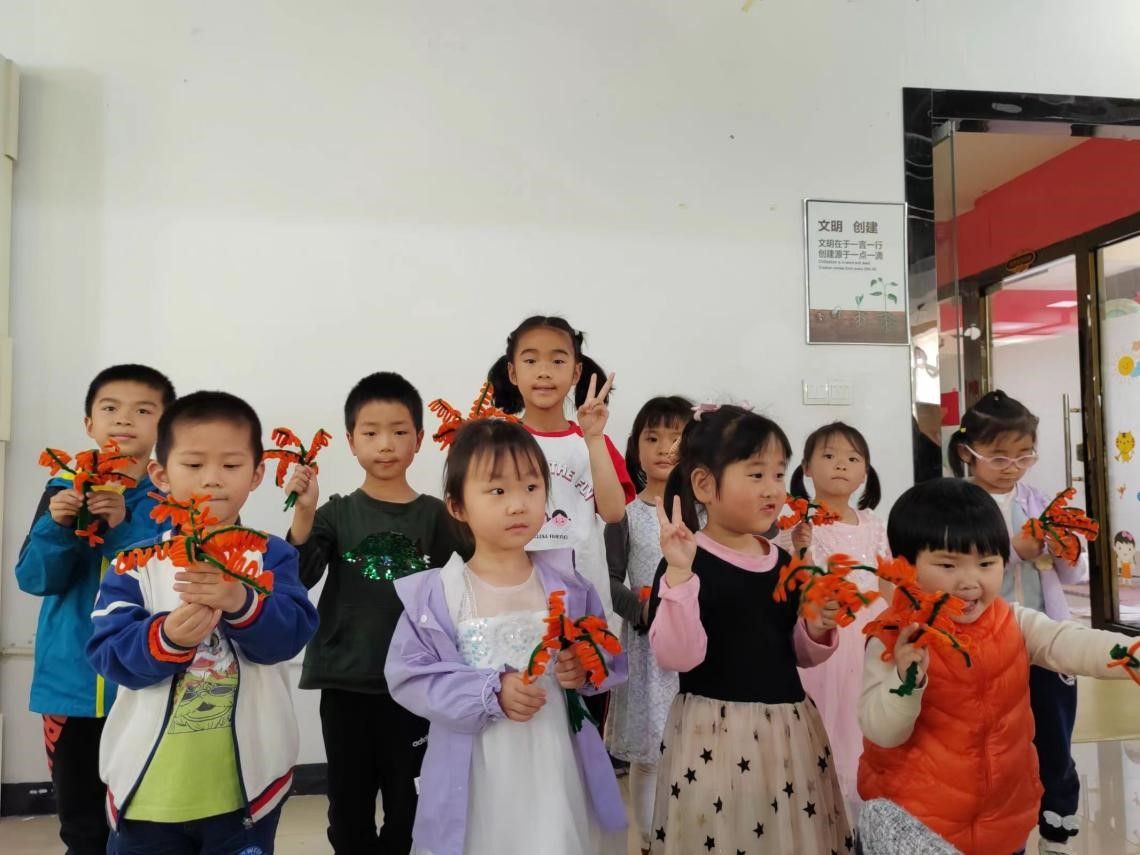 课后拓展部分,段湘玲通过幻灯片向小朋友们展示扭扭棒麦穗的制作过程,小朋友们一步一步跟随志愿者的指引,都完成了自己的小麦穗并手拿麦穗合影留念。