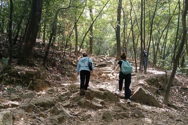 此次活动分为路线介绍、会员爬山以及感悟分享三部分。会员们于二里半校区忠烈祠集合。江艾雯借助地图为会员们介绍上山路线、安排会员休息地点,并提醒会员们楼梯陡峭,注意脚下安全。爬至山顶后,会员们分享各自的所见所闻所感。读书协会理事长刘妍、理事李顺风为会员们分发小礼品并组织大家进行集体合照。