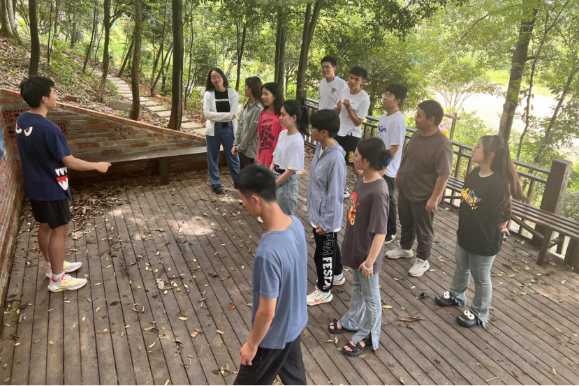 谭益水进行如立正稍息、向右看齐等场控口令示范,并让场控组成员出列练习口令指挥。他表示,场控组各成员口令需要短促有力、清晰明了,各成员指挥时需要自信挺拔,同时实践队成员都要有控场意识,便于课程有序地开展。谭益水组织场控组成员依次出列指挥提前准备好的室外游戏,包括“攻城”、“贴膏药”、“老鹰捉小鸡”以及“抱团取暖”。指挥活动结束后,谭益水向参加培训活动的成员表达感谢,并提醒场控组成员及时上交室内和室外游戏策划案。