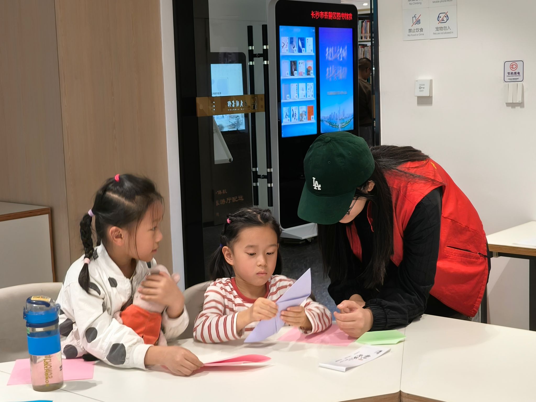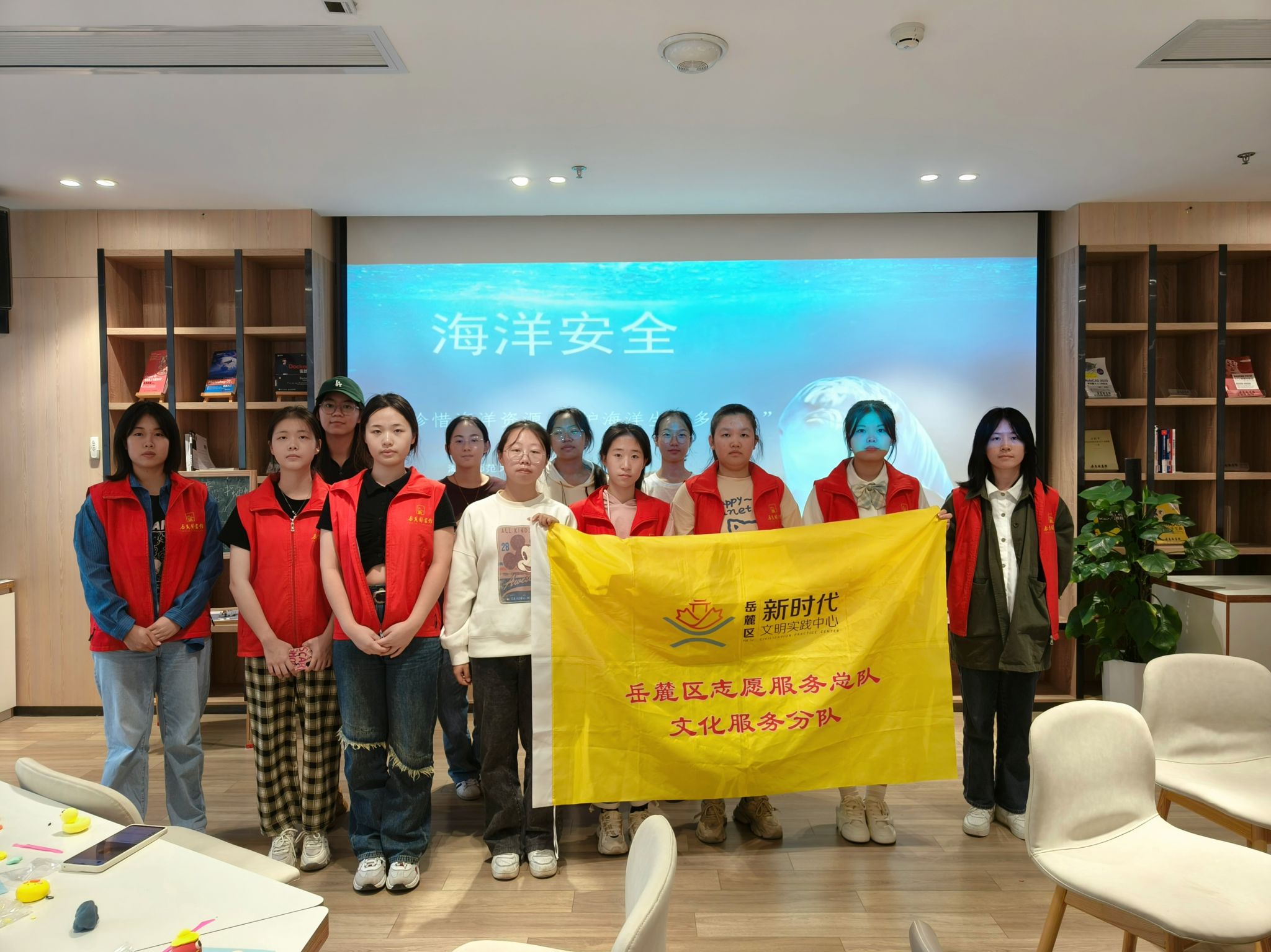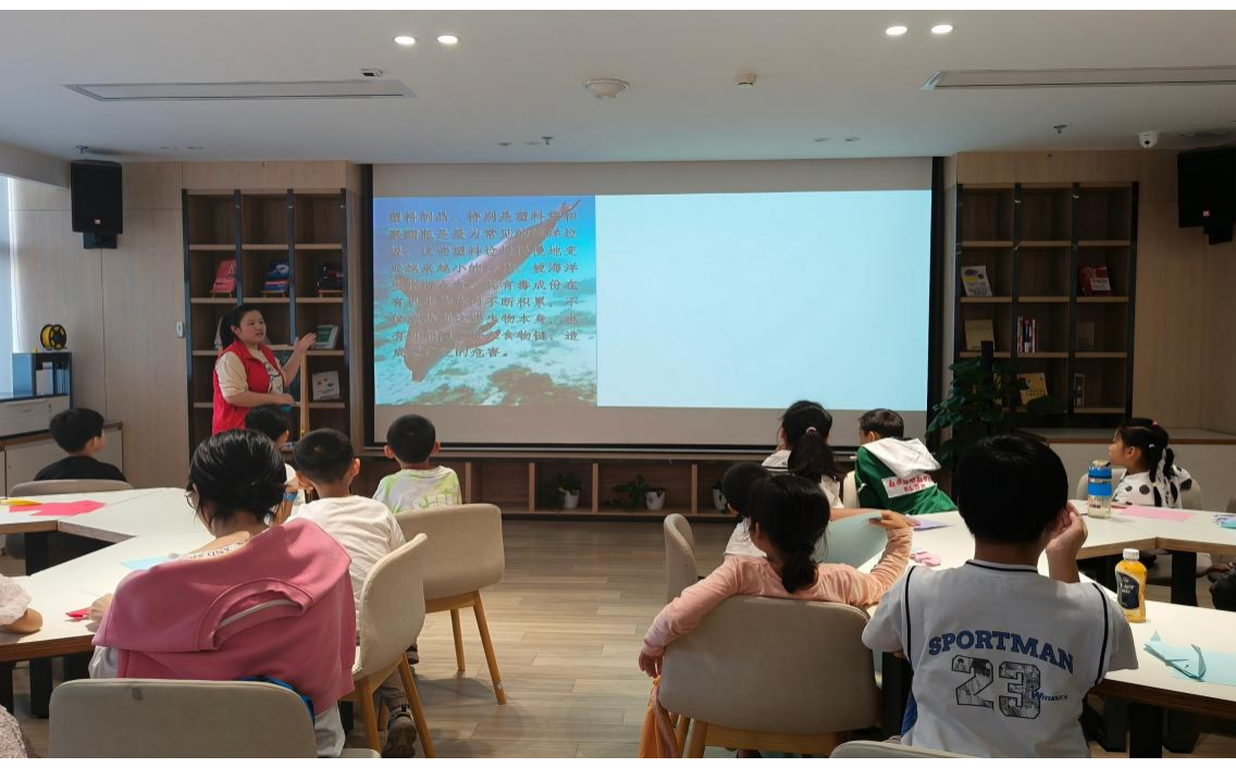 此次活动分为海洋知识讲解和手工制作两部分。罗婷以PPT的形式向小朋友们讲解海洋生物相关知识,并介绍海洋污染的类型,让小朋友们意识到爱护海洋生物、保护海洋安全的重要性。志愿者将折纸和超轻黏土材料分发给小朋友们,对小朋友所选动物的形态特点相关知识进行补充,并帮助他们制作海豚折纸和捏造动物黏土模型。志愿者们同小朋友们合影留念,并打扫场馆卫生。