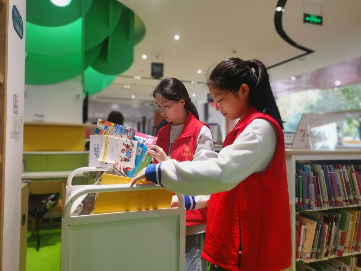 志愿者们加入图书馆文化志愿服务队伍。活动开始前,由图书馆工作人员对志愿者提供专业的培训,志愿者被分为两组开展志愿服务。活动期间,第一小组的同学负责馆内一楼的信息咨询、图书借阅等任务;第二小组的同学负责图书整理、文明劝导等工作。