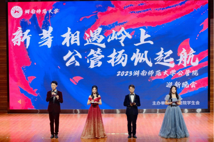 (通讯员 廖雯君 刘天姿 曾靖雯)12月2日,公共管理学院(以下简称“公管院”)在湖南师范大学附中芙蓉中学为公厅礼堂举办主题为“新芽相遇岭上,公管扬帆起航”2023迎新晚会。参加此次迎新晚会的领导嘉宾有院党委书记余望成、院党委副书记孙雯波、社会学系系主任罗忠勇、2023级社会学班班导师赵玉燕、2023级哲学班班导师李志龙、学工办主任兼2022级辅导员林哲旭,2020、2021级辅导员易晓、2023级辅导员申峰铭、兰绍娴以及公管院2023级本科生。