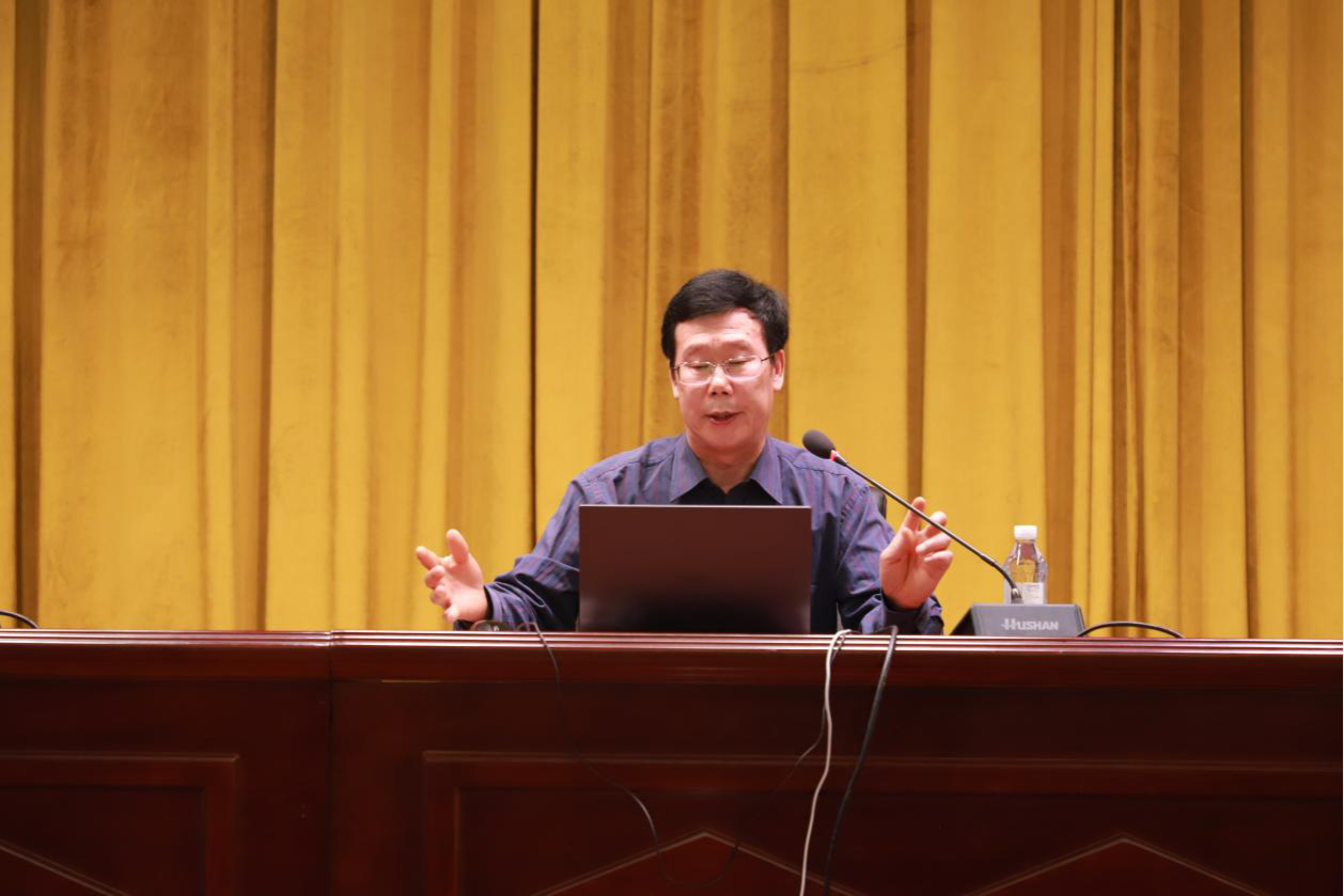 (通讯员 张彤 田灿 邓芝涵)4月21日上午,为响应教育部《读懂中国》主题教育活动,生命科学学院(以下简称“生科院”)关心下一代工作委员会邀请知名校友、中科院亚热带农业生态研究所研究员、水稻新种质“巨型稻”研发人夏新界博士,于理学院国报厅举办“禾下乘凉不是梦”素质教育讲座。校关工委常务副主任徐书华,校关工委副主任何国萍、向际善、谭伟,离退休工作处副处长方俊雄,生科院关工委陈业爱、陶虹、杜敏涛等出席此次讲座。讲座由院党委副书记、院关工委主任彭赛丰主持。生科院2023级全体学生参加此次讲座。