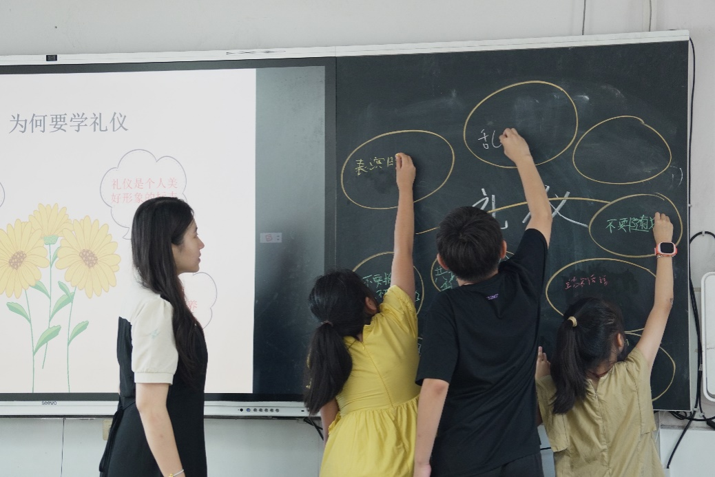 课程最后,队员带领小朋友们编写礼仪歌、做情景扮演小游戏,让小朋友们在实践中对礼仪文明有更加深刻的了解,延续“礼仪”传统,争做文明有礼少年。