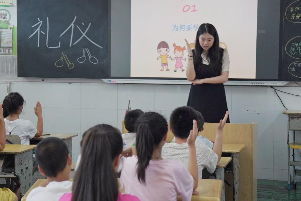 (通讯员 黄颐晨 李紫瑀)为深入贯彻落实党的二十大精神,弘扬中华民族传统美德。7月15日下午,信息科学与工程学院“朝华溪实”赴怀化市沅陵县暑期社会实践团于凤鸣小学开展“童心童礼,快乐相伴”主题教育活动。