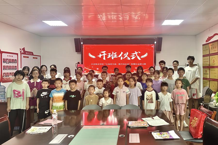 (通讯员 姜璐瑶 王艺鸣 曹珩哲)7月13日,法学院赴开慧镇“智汇开慧,法润心田”暑期社会实践团“大孩带小孩,携手向未来”暑期公益讲习班于开慧村村委会举行开班仪式,并正式开展授课,开慧村党总支书记郭翠出席此次会议,仪式由实践团队长杨科主持,队伍全体成员、30余位开慧村中小学生参与此次仪式与授课。