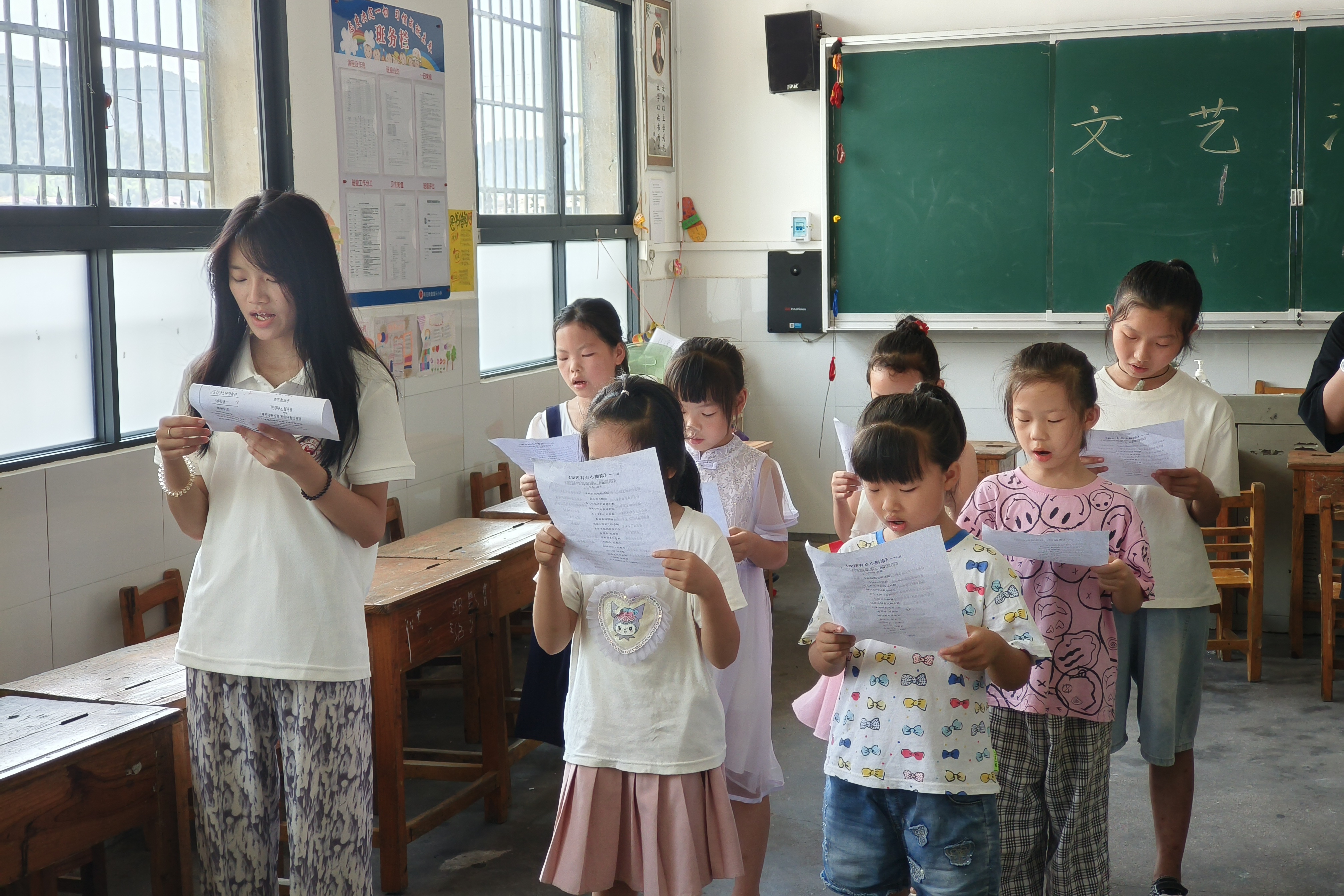此次文艺汇演的节目形式多样,包括诗歌朗诵、合唱、舞蹈等特色表演。诗歌朗诵节目《祖国啊,我亲爱的祖国》,展现了学生们饱满的热情和真挚的情感,体现出学生对祖国的无限热爱和崇高敬意。学生们和老师一起表演曲目《我还有点小糊涂》,曲调温暖欢快,展现了学生们天真烂漫、勇于表达自我的青春风采。舞蹈表演《勇气大爆发》既有趣味性,又展示了青春的活力与无畏。学生们通过动感的节奏和有力的动作,表达了他们面对挑战时的勇敢态度。在师生互动环节,实践团成员为学生颁发奖状并赠送礼物,最后大家一起合影留念。至此,春华自强社暑期社会实践团的三下乡实践活动正式结束。