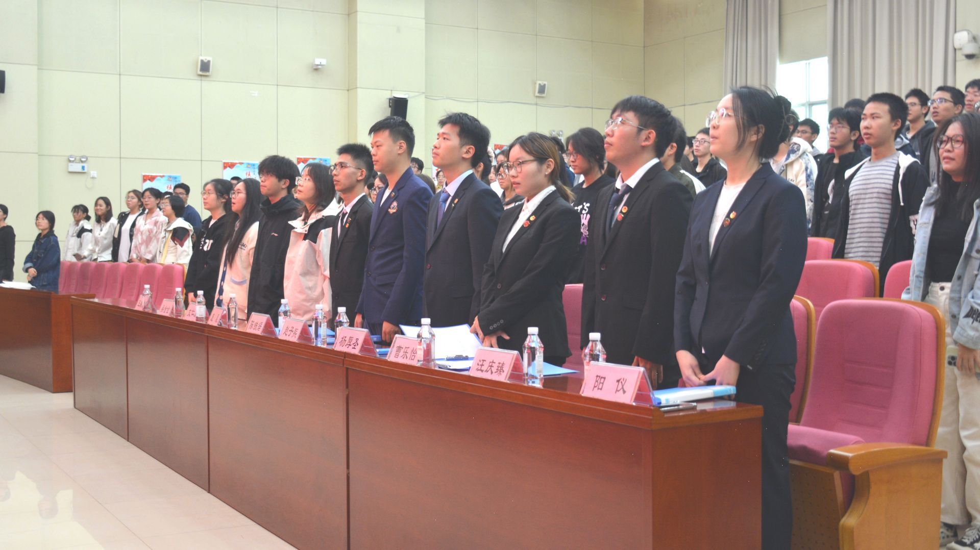 张明明则从“双脚有‘泥’”、“双手有‘墨’”、“双肩有‘责’”三个方面进行发言,倡导学生们将个人命运与家国未来紧密联系起来,以青春之力助力民族伟大复兴。