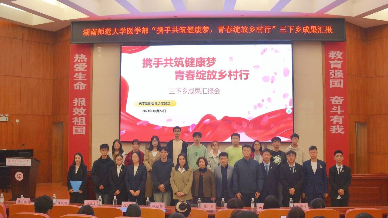 (通讯员 张瑞杰 伍书影 王怡)10月23日中午,医学部在仁医楼学术报告厅举行“携手共筑健康梦,青春绽放乡村行”三下乡成果汇报会。学工办主任张晓红、部团委书记张明明、部团委副书记黄鸿剑、学社管指导老师谢宇以及学生会指导老师朱天爱出席该活动。六支队伍队长及医学部部分学生参与此次活动。