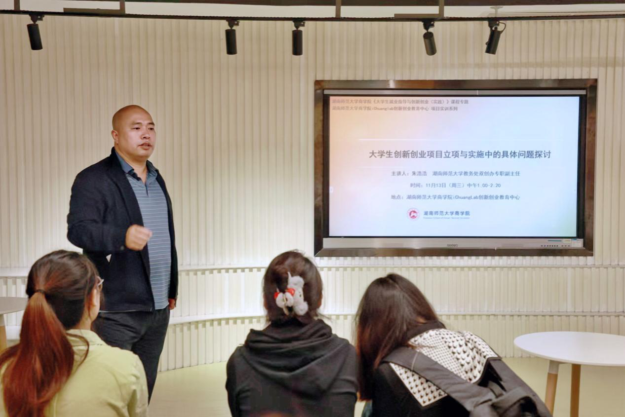 (通讯员 历彦孜 汪子熙)11月13日中午,商学院于iChuangLab创新创业教育中心举办主题为“大学生创新创业项目立项与实施中的具体问题探讨”的讲座。我校教务处双创办专职副主任朱浩浩担任此次讲座的主讲人。