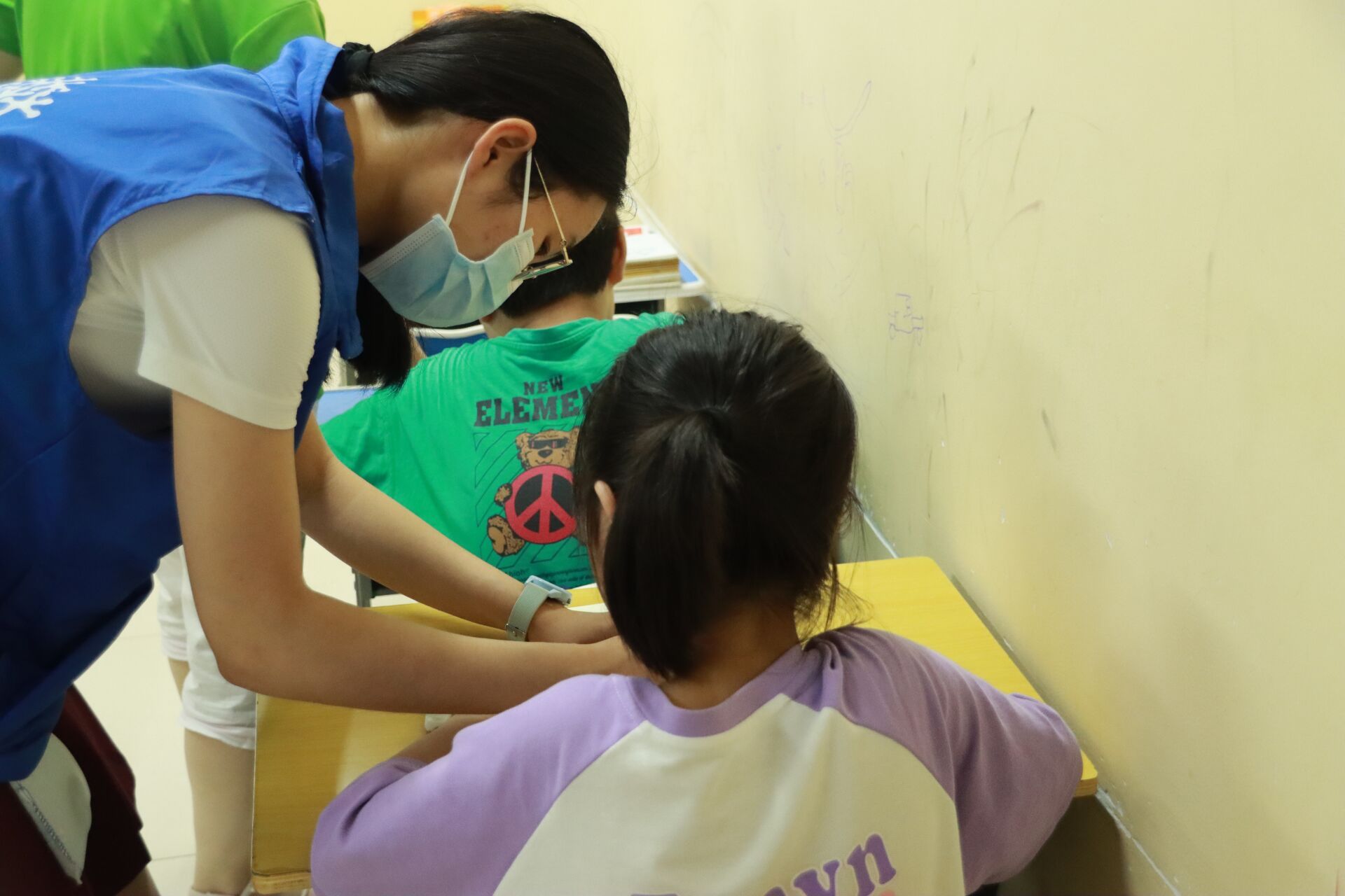在汉字书写教学中,志愿者们通过示范教学,辅导自闭症儿童进行汉字书写练习。活动过程中,志愿者指导孩子们认识汉字结构,示范规范的笔画顺序,并辅助他们进行书写练习。面对理解和动手能力较弱的孩子,志愿者们保持耐心,多次重复教学内容,逐步引导自闭症儿童完成书写。在志愿者的悉心指导下,孩子们对汉字书写有了更多认知,书写能力也得到一定程度的提升。