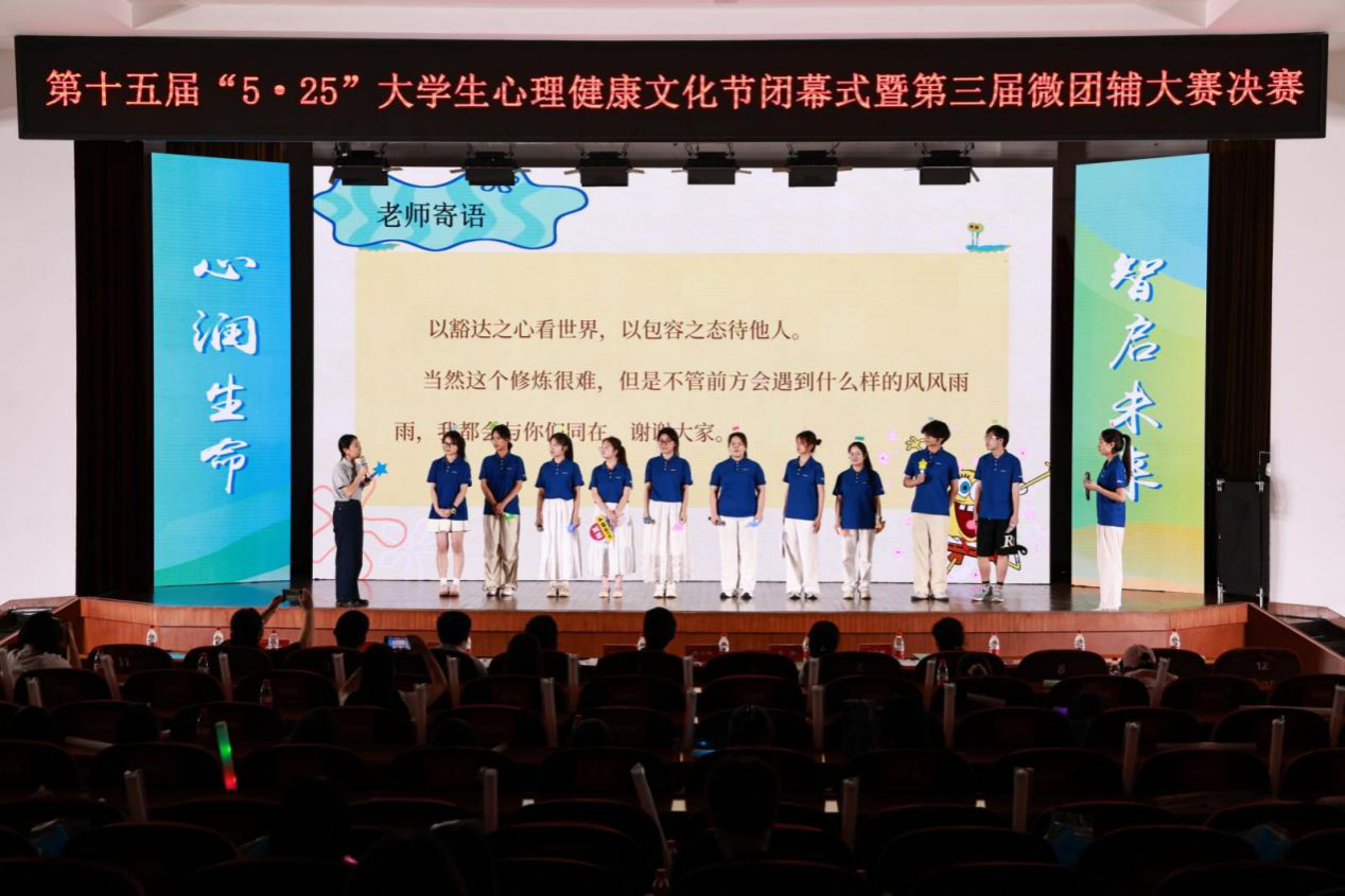 (通讯员 于佳瑶 张容华)5月29日晚,第十五届“5.25”大学生心理健康文化节闭幕式暨第三届大学生微团辅大赛决赛在国际学术报告厅落幕。本届大赛由我校心理中心主办,公共管理学院(以下简称“公管院”)承办。作为承办方,公管院主动对接各项赛事工作,以严谨态度落实每个环节,确保大赛的进行。