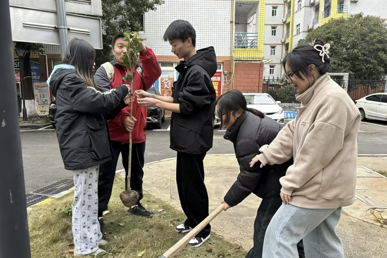 活动过程中,学生分组协作,完成铲土、扶苗、填坑、浇水等植树环节。桂花树苗被种植于绿化区中,园区绿化得到补充。植树结束后,学生自觉清理工具和现场杂物,全体参与人员合影留念。活动后期,组织部成员整理资料、清点回收物资并完成工作总结。为保障树苗成活率,天马团学将安排定期养护工作,包括每周检查树苗生长情况、每月组织一次集中养护。