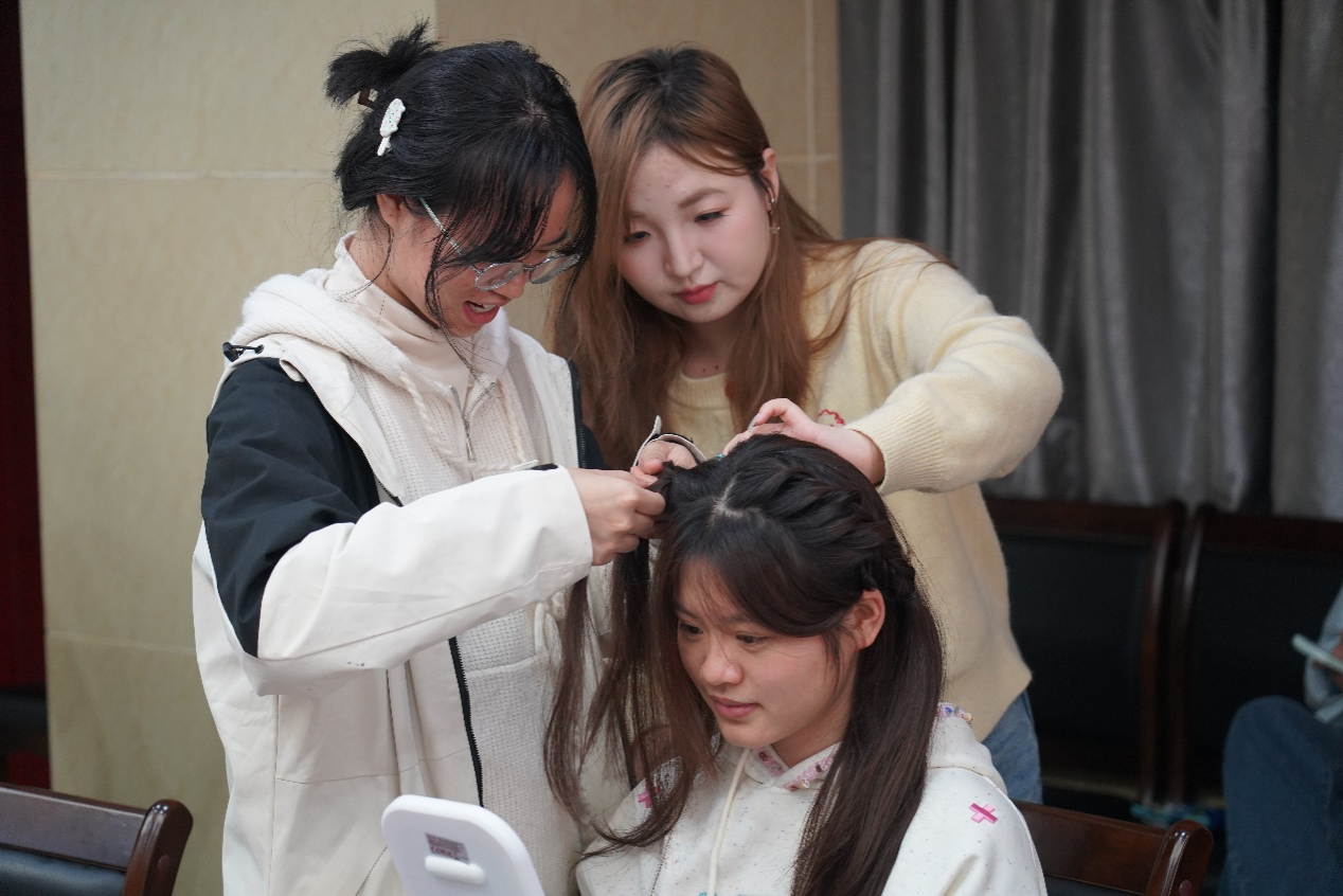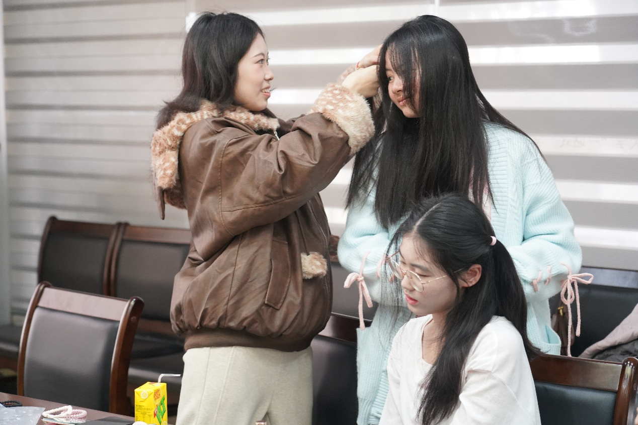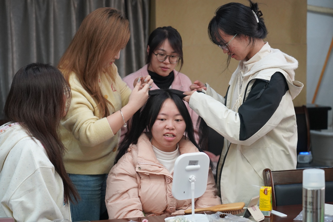 活动现场由工作人员提前布置,邀请校内美妆社团成员、擅长化妆的志愿者,以及时尚感较强的同学和服装设计专业同学担任嘉宾,同时备有茶歇零食。参与同学专注参与活动,美妆嘉宾现场教学化妆编发技巧,穿搭嘉宾分享服装色彩搭配、版型选择等实用内容,同学们相互交流学习、认真聆听、积极互动,美妆嘉宾手把手教学化妆编发技巧,穿搭嘉宾则分享色彩搭配、版型选择等实用建议。