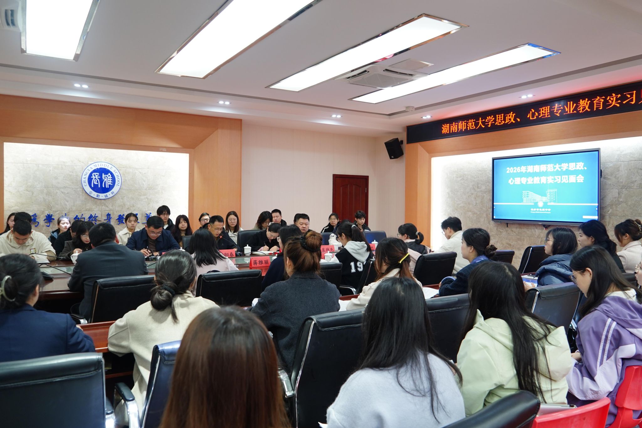 (通讯员 秦佳期 夏年彬)3月30日,马克思主义学院2023级赴长雅中学实习队在教学楼三楼会议室召开实习见面会。长雅中学党委书记何毅、相关领导老师,马院思想政治教育系副主任李艳萍及实习队全体成员参加会议。