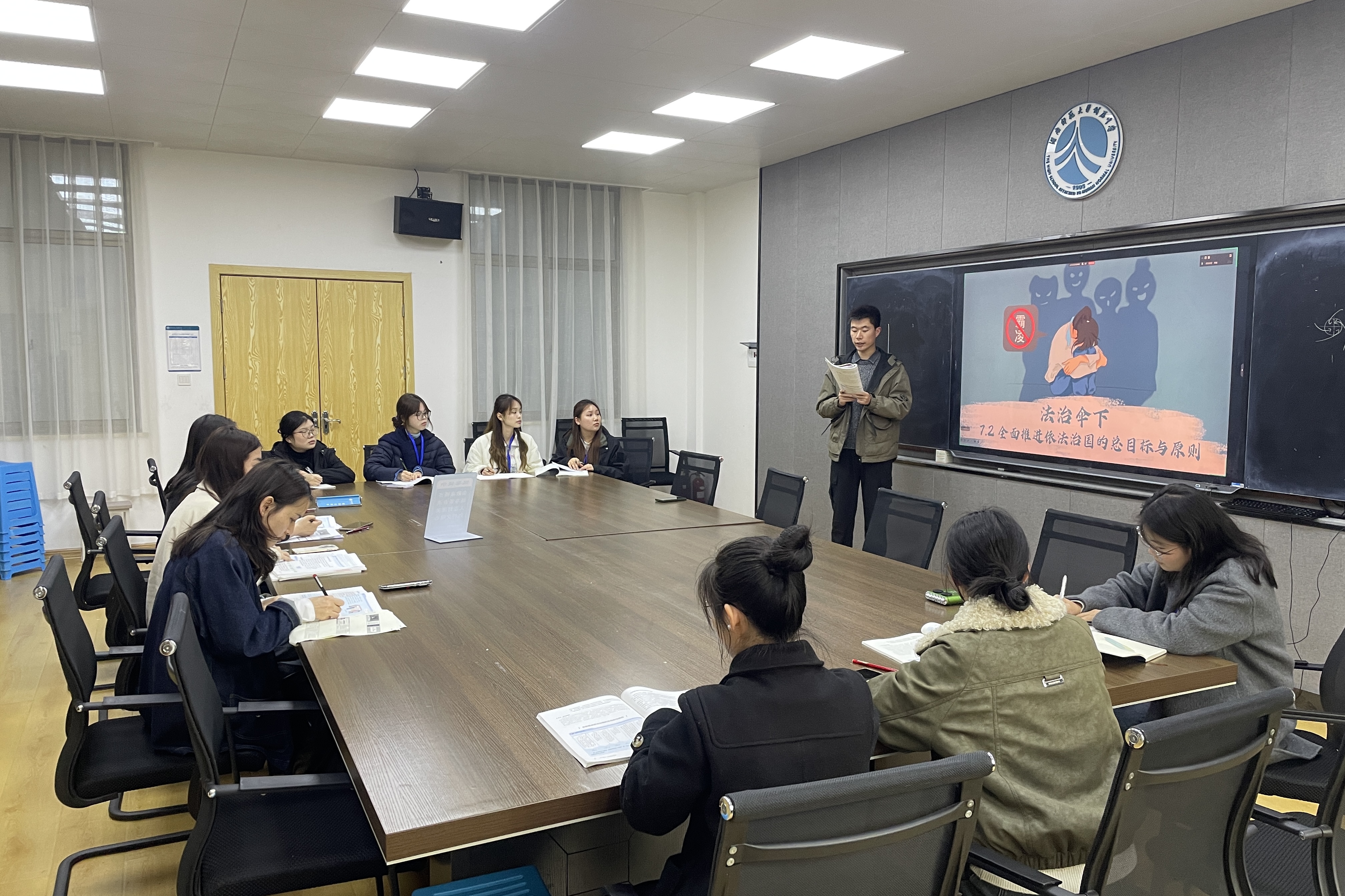 上午,初中组与高二组实习队员分别前往对应年级办公室,在备课组长的指导下,明确了认真完成教案课件、按时审核及选用典型教学案例等工作要求。随后,队员们与各自的学科指导老师及班主任见面,并进入所带班级进行自我介绍,与学生建立初步联系。下午,高一政治备课组召开集体备课会,备课组长为高一组队员做实习部署与教学指导,重点围绕“全面依法治国”单元的核心知识点展开教学设计探讨。
