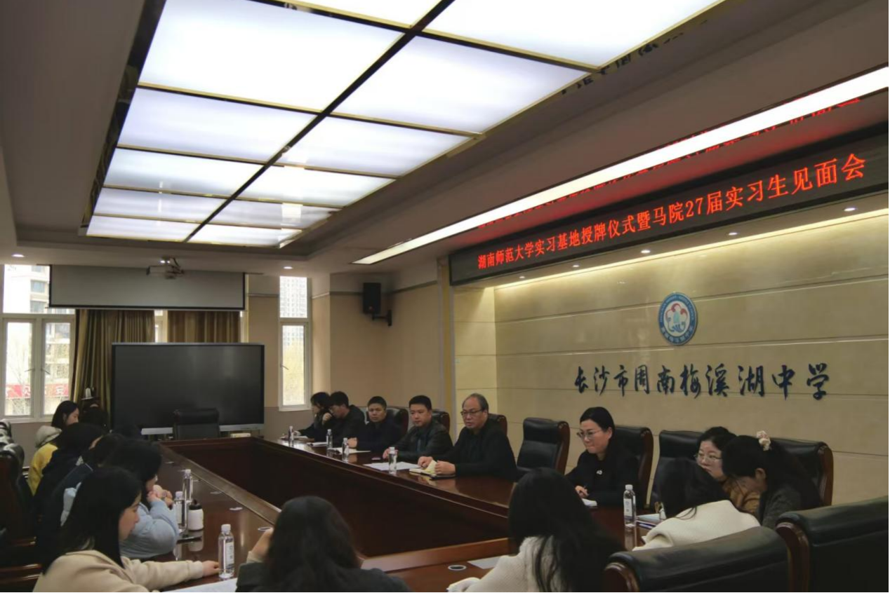 (通讯员 刘乐 余超 唐鑫)3月30日下午,马克思主义学院赴长沙周南梅溪湖中学实习队于长沙周南梅溪湖中学勤朴楼301教室举行实习见面会暨校级实习基地签约授牌仪式。长沙市周南梅溪湖中学党委书记曹共平,我院党委副书记易珊,教师发展中心主任许晴,实习队指导老师王众威、黄锋强及实习队全体成员共同参与此次活动,许晴担任主持。