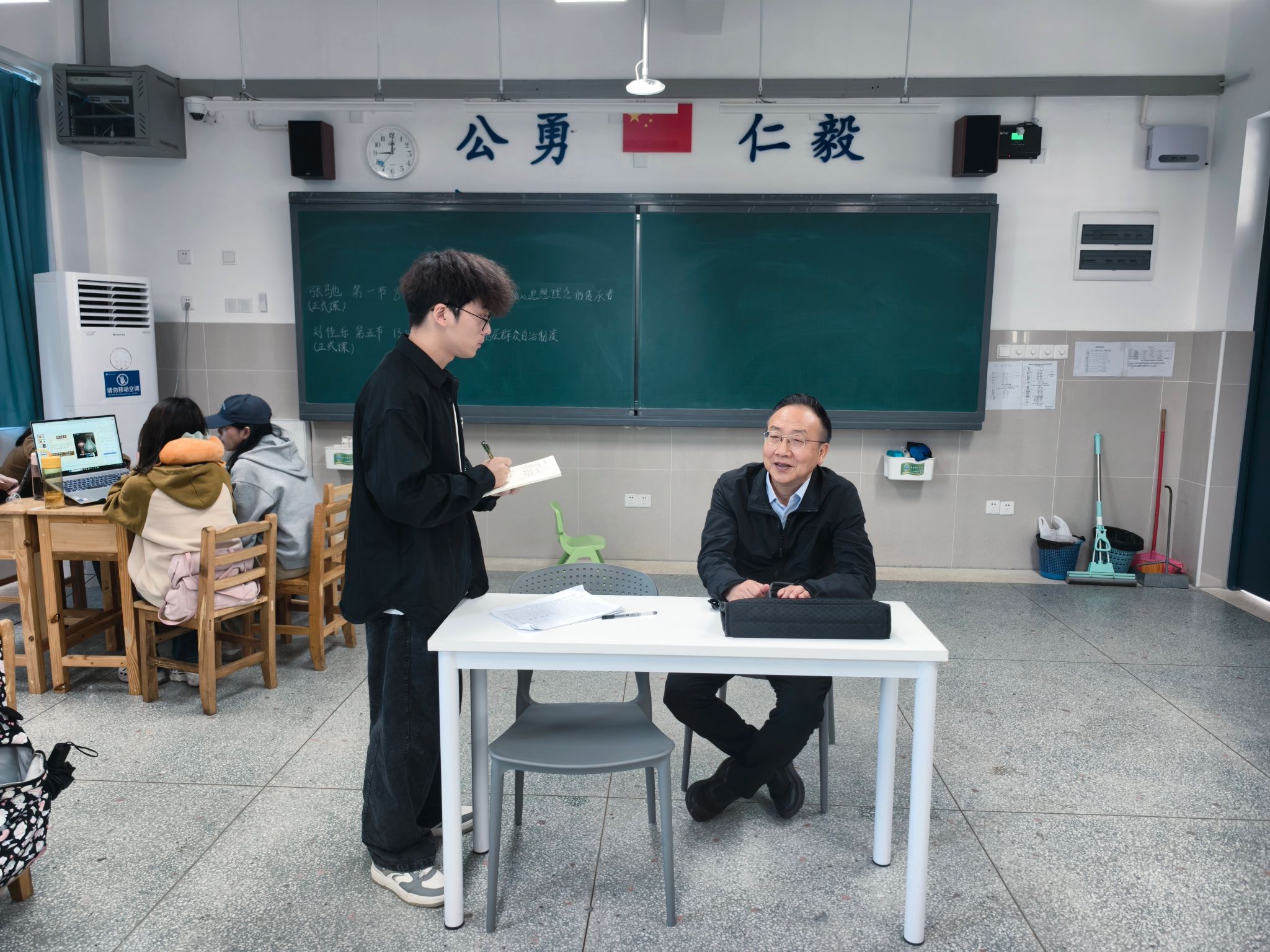 蒋国海结合实习队员的发言,对会议进行了总结点评。他肯定了实习队近期的成绩,针对授课中暴露的问题提出了教学建议,并鼓励大家相互学习、勤于反思,持续提升综合素养。